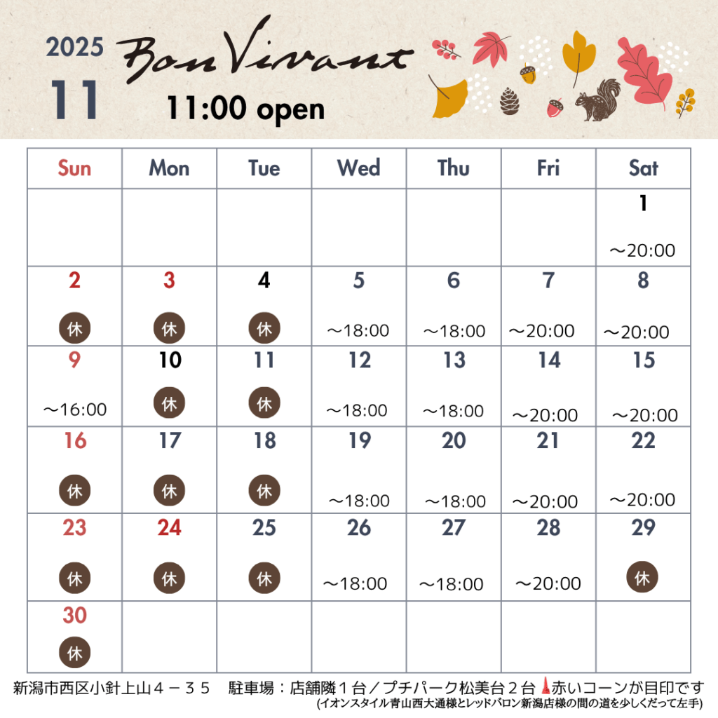 なお、11/29(土)はイベントのため営業をお休みさせていただきます。