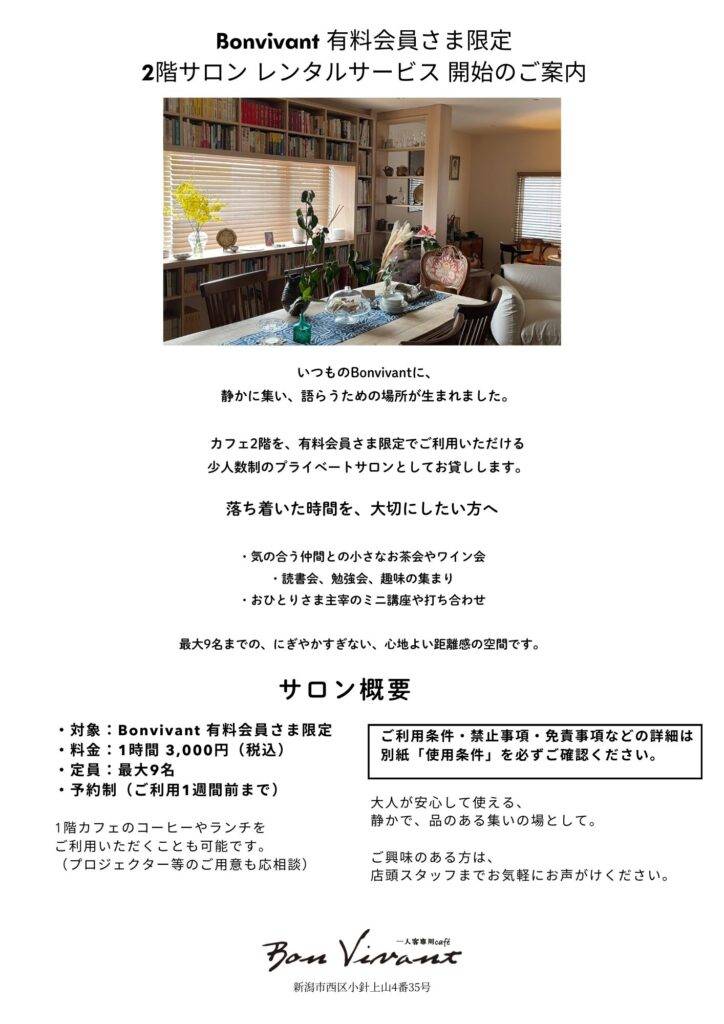 いつものBonvivantに、静かに集い、語らうための場所が生まれました。